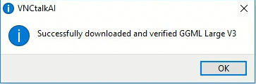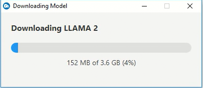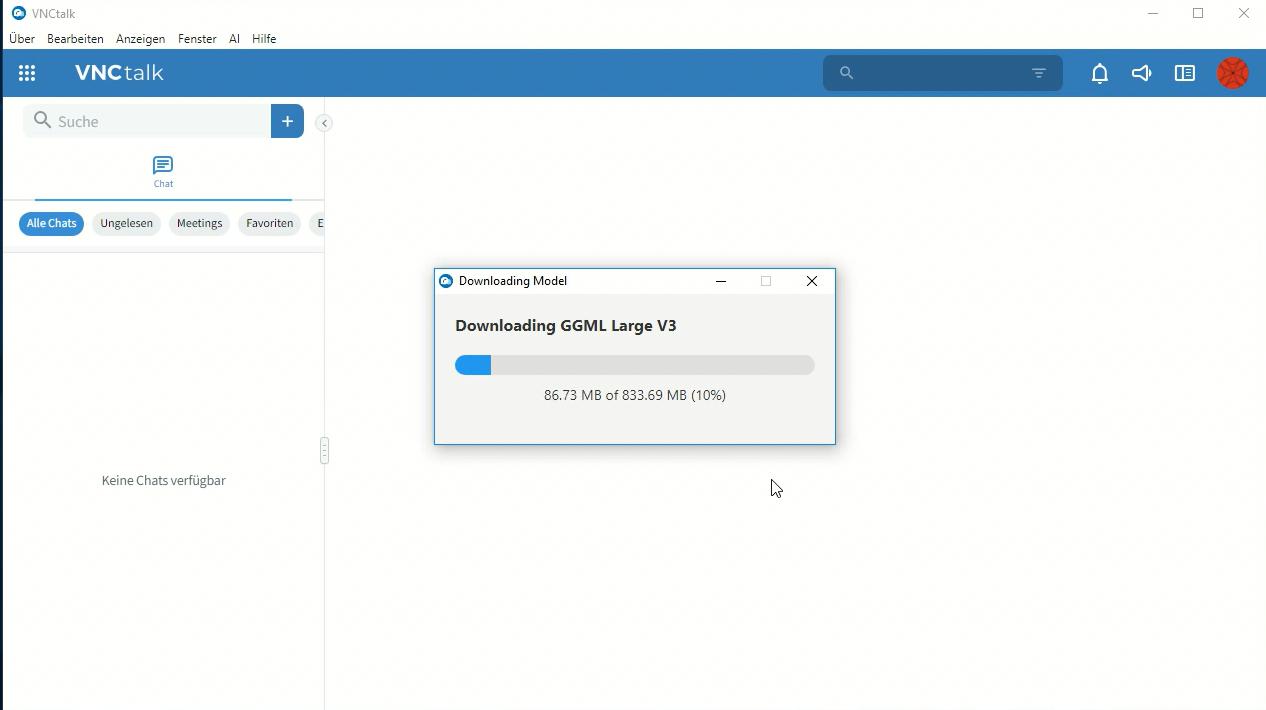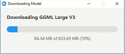 Right after the first login, the client will automatically start downloading the files of the default LLM Model, which currently is GGML Large V3.