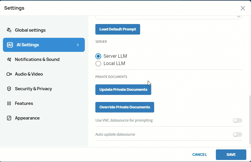 Scroll down beyond the prompt configuration, which you can leave unchanged, down to the bottom of the AI Settings menu: