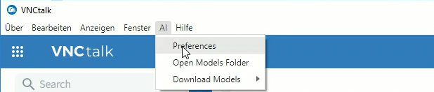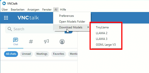To download additional LLMs, open the AI dropdown in the menu bar again and select Download Models from the opening drop-down menu.