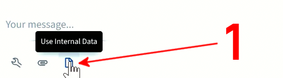 To use the content of uploaded documents for processing your prompts, you need to activate it by clicking the Use Internal Data button once, which will change its color to blue indicating that internal data usage is activated now.