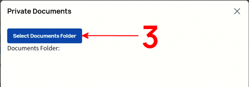 In the opening Private Documents popup window, click on Select Documents Folder, which will open the file browser of your OS.