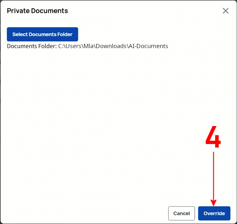 Click Override Private Documents to configure the Documents folder for processing internal data: