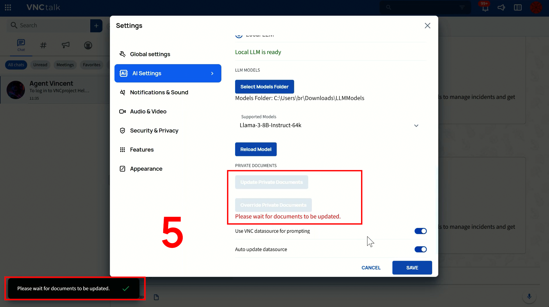 Finally, restart the VNClagoon AI desktop client to use the configured LLM!