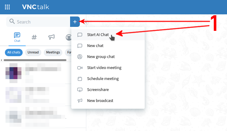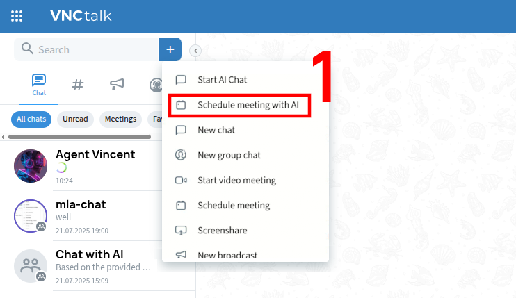 To schedule a meeting in VNCtalk with the help of VNCai, click "+" and select