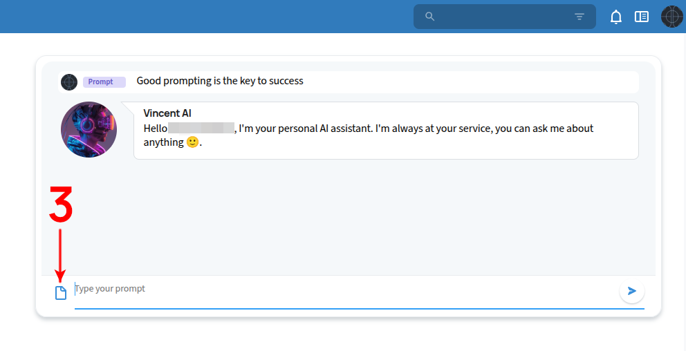 - Once decited, you can enter your queries or prompts to the AI agent into the input field.