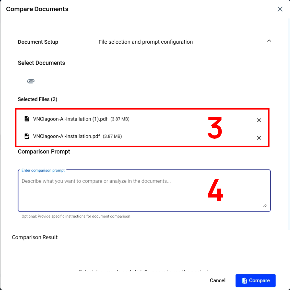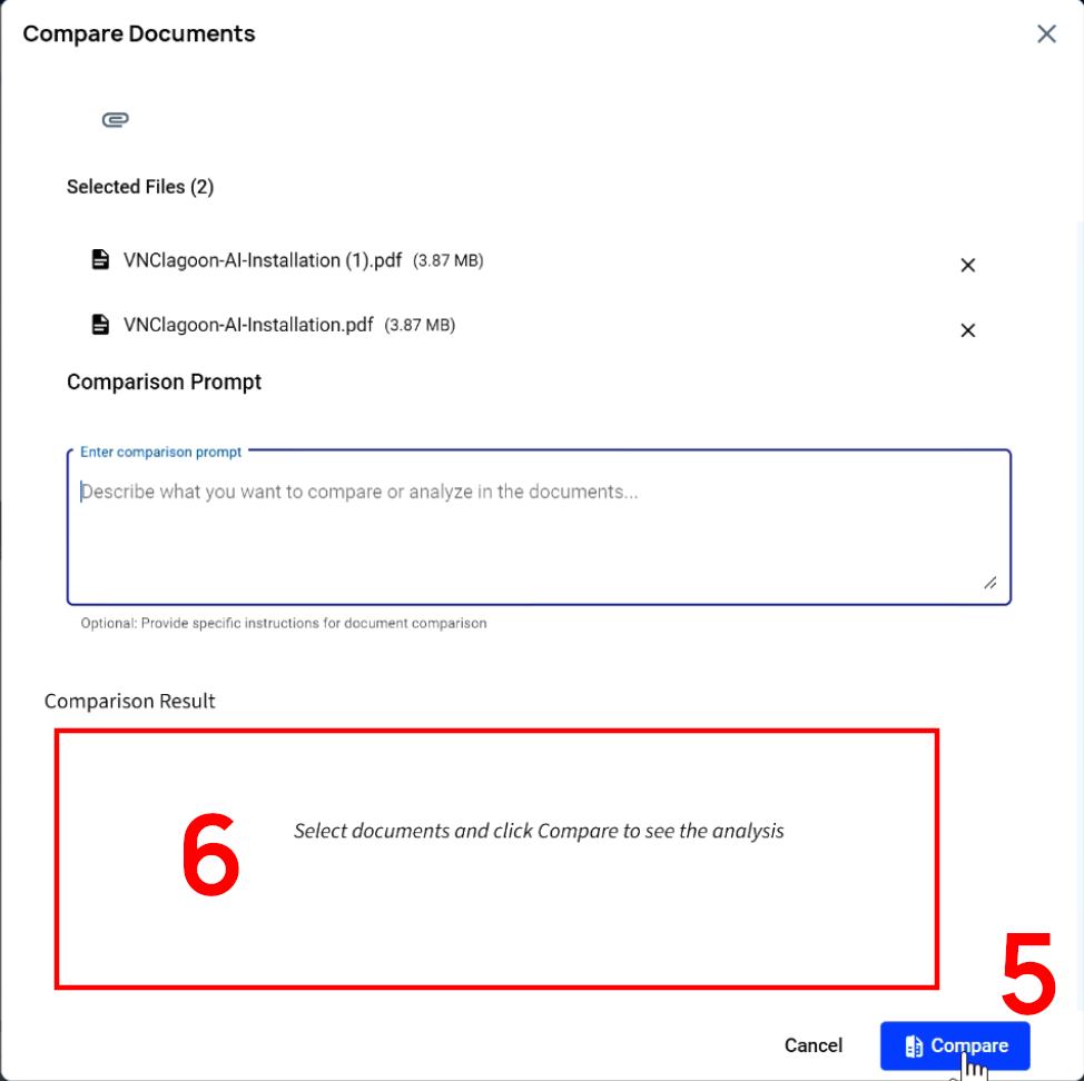 VNCai will then provide the comparison analysis into the Comparison Result field