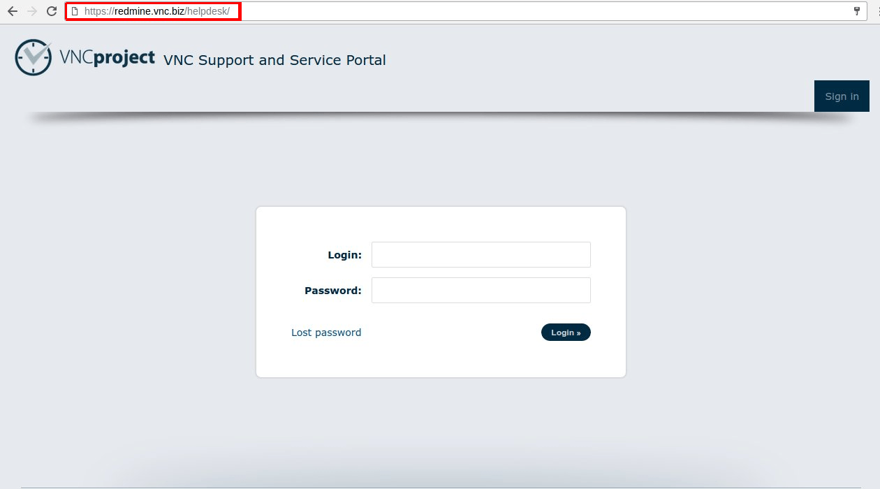 Note: In order to access the VNCproject Support Portal you must first have an account.If you do not have an account yet, you have to request one from your contact at VNC. The VNC Support Team will then contact you and provide you the credentials.