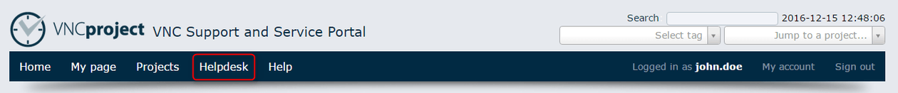 Point your web-browser to https://vncproject.vnc.biz/helpdesk and log-in with your username and password.