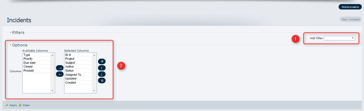 - Add/remove columns when expanding the Options menu, to select the information displayed in the Incident Summary List, in case the default selection of displayed information in the listing does not suit your needs.