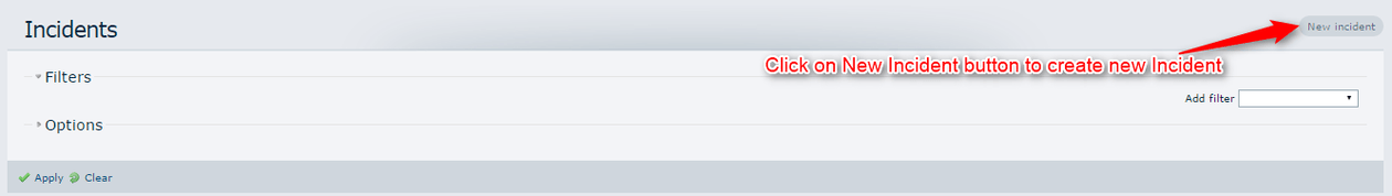 - New Incident: here you can create a new incident by filling up the New Incident form.