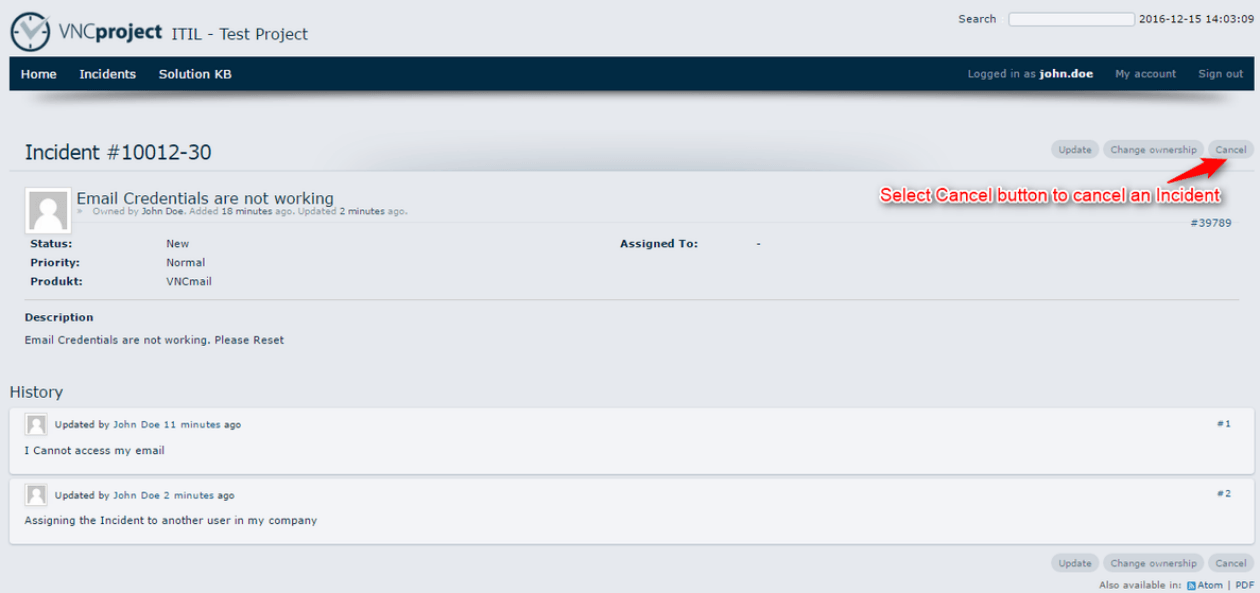 In some cases you already created an incident, but then realize that the issue got solved already, so there is no need to fulfill the request anymore or for some reason the helpdesk team should not get involved, helping you to fix the issue.