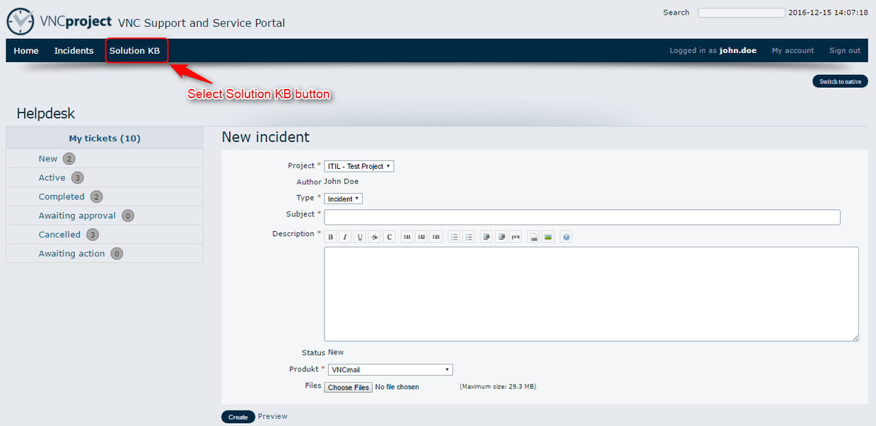 In addition it will explain, what functions you can use at each stage of the ticket handling process until you get the solution to the issued incident. This way you can begin to experience all of our Helpdesk portal benefits immediately.